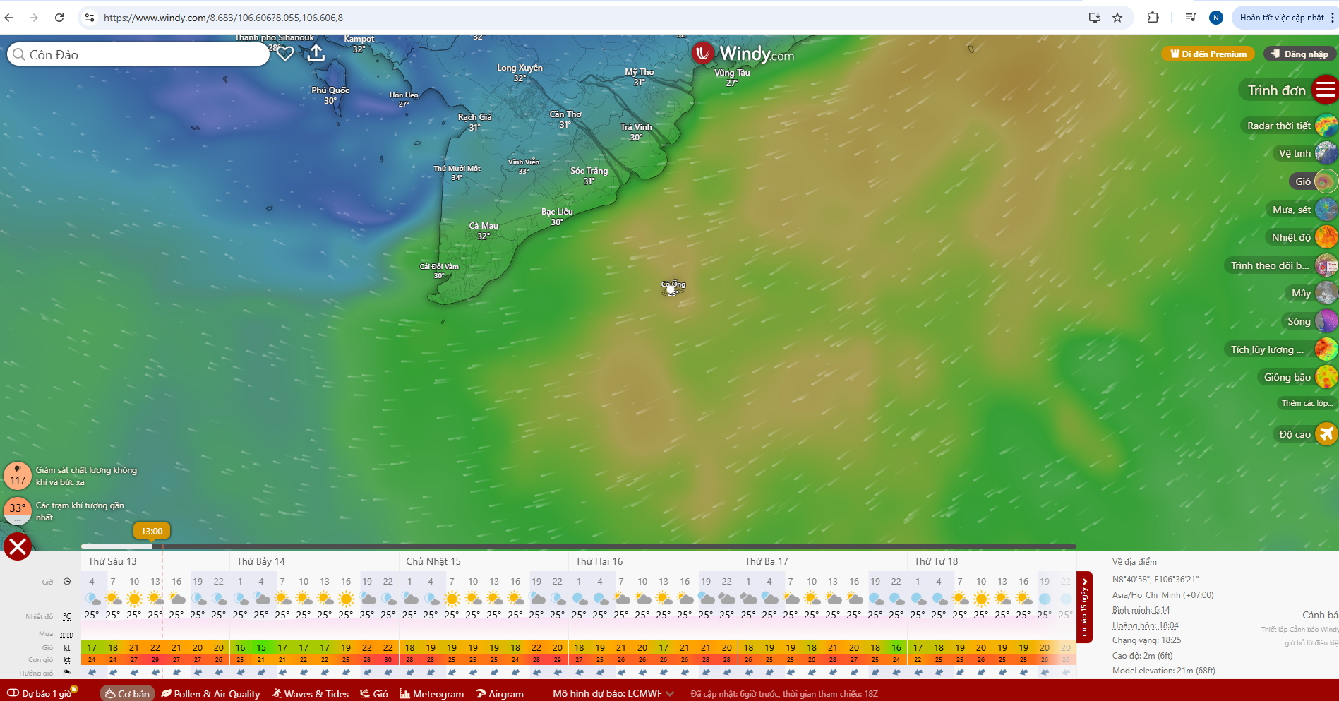 Dưới đây là các bước check Windy cực chuẩn để chọn ngày biển êm: