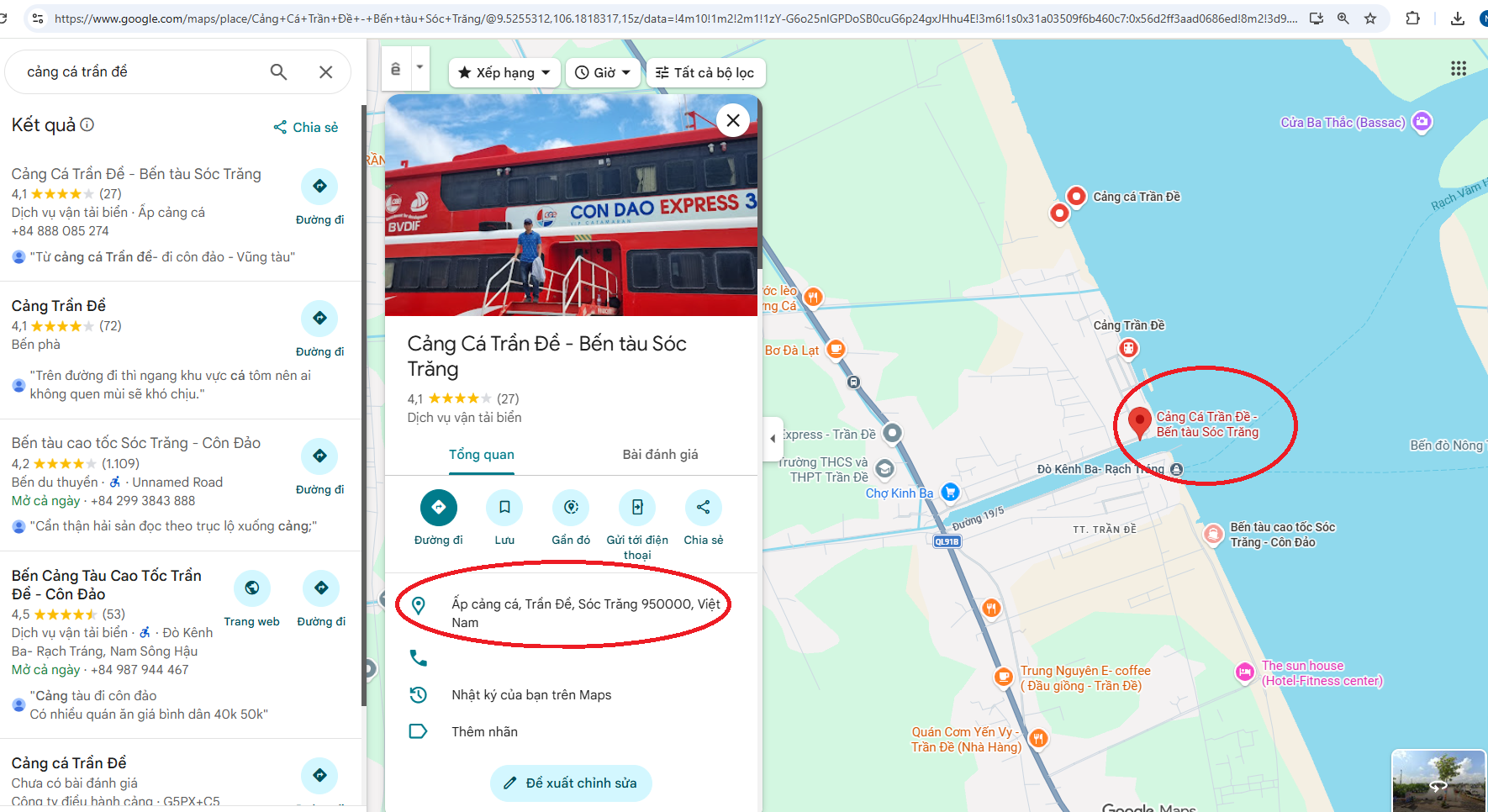 Tìm đúng địa điểm: Cảng Cá Trần Đề - Bến tàu Sóc Trăng trên Google Maps (Xem bản đồ)