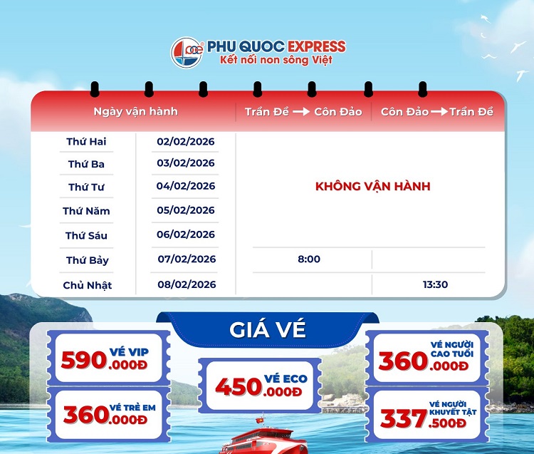 Thông báo lịch tàu Trưng Trắc Phan Thiết - Phú Quý 2/2026:
